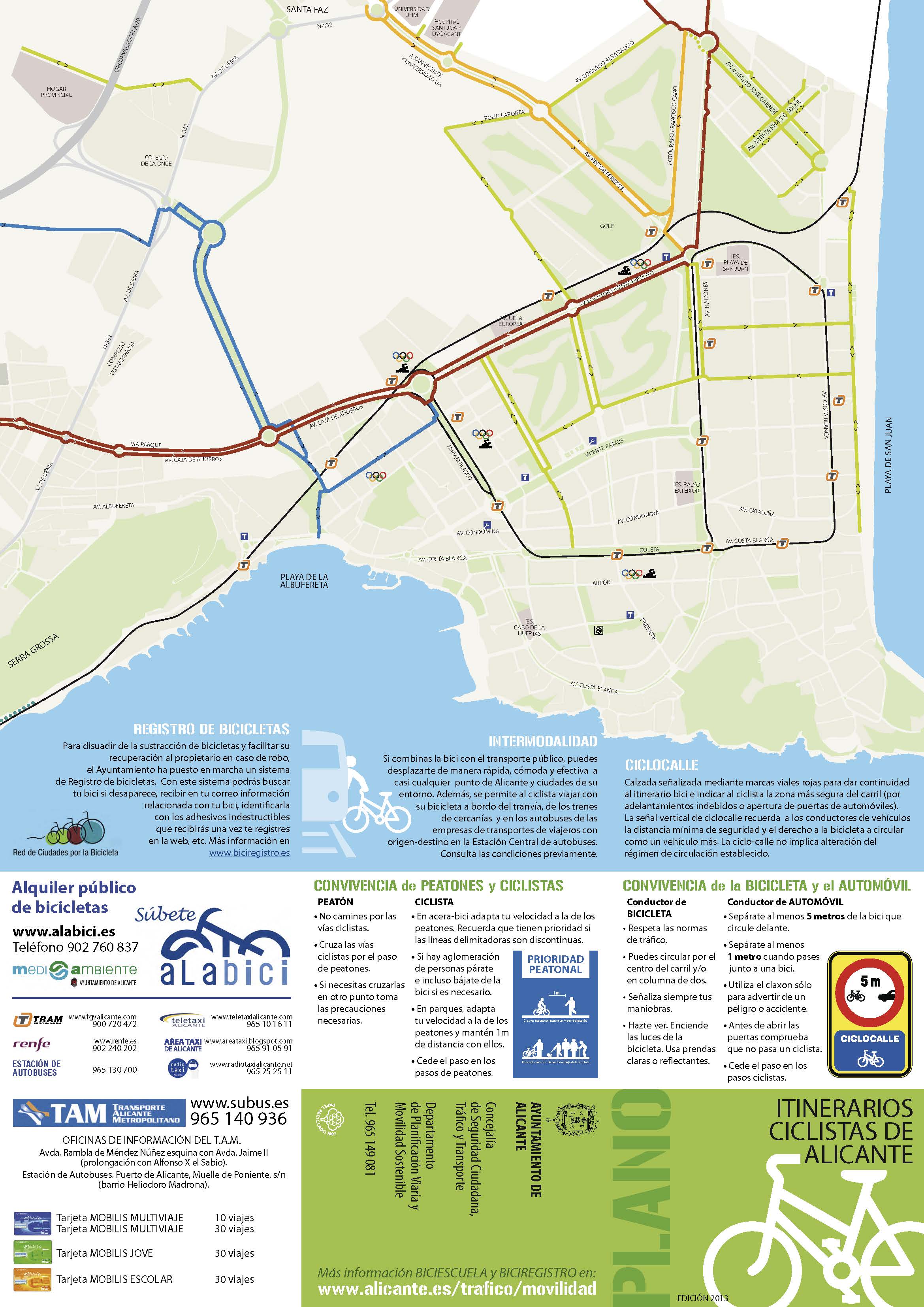 Plano del Carril Bici en Alicante (Ausencia de itinerarios en el PAU2)