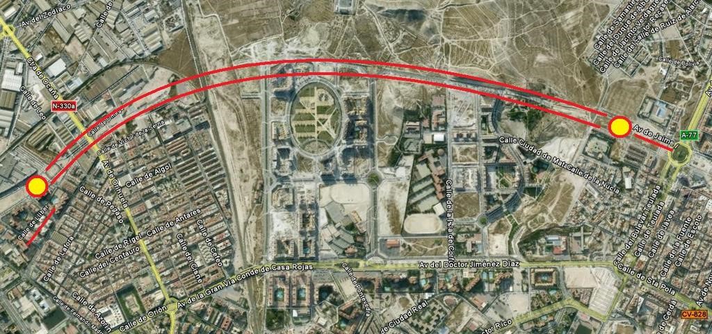 Plano del Carril Bici en Alicante (Ausencia de itinerarios en el PAU2)